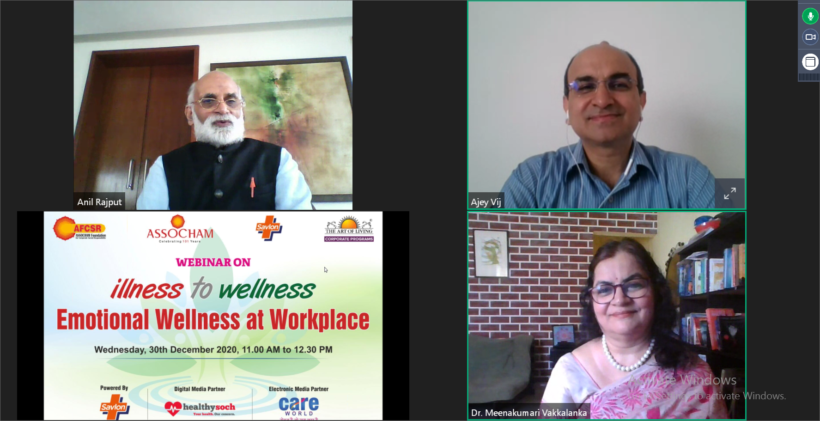Among panellists, Mr Ajey Vij, senior faculty, Art of Living Corporate Programs, while speaking at ASSOCHAM webinar shared his immense wealth of wisdom and extensively covered aspects to avoid stress at workplace, to control our thoughts and emotions to be a good leader and to use breathing techniques to enhance emotional wellness.