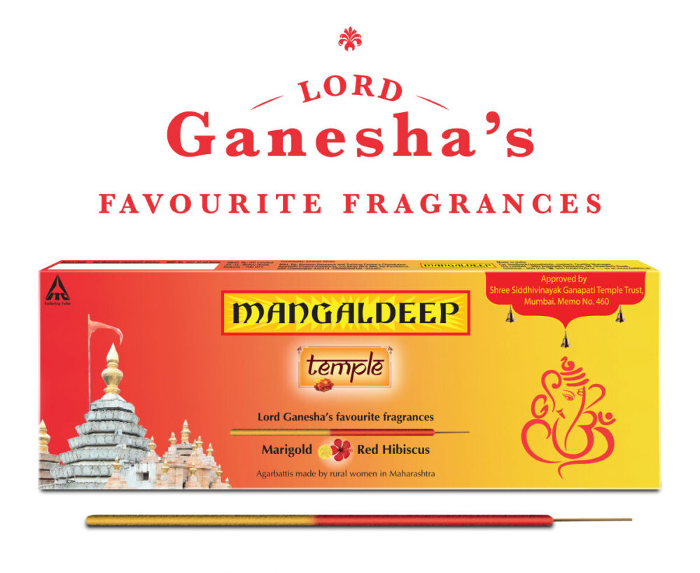 The ‘Mangaldeep Temple – Lord Ganesha’s favourite fragrances agarbatti” is a divine agarbatti specially crafted for Lord Ganapathi’s devotees. The agarbatti contains the flowers offered to the Lord at Shree Siddhivinayak Temple. It is an innovative dual-fragrance agarbatti, made with fragrances of items believed to be Lord Siddhivinayak’s favourite – Hibiscus and Marigold. The agarbattis are made by rural women of Maharashtra, working under the aegis of BRTC (Bamboo Research & Training Center), Pomburna, Government of Maharashtra. The pack also has the approval of the Shree Siddhivinayak Temple Trust as a mark of credibility. For every pack sold by ITC, the company will contribute a dedicated amount mentioned on the pack to the Shree Siddhivinayak Temple Trust, on behalf of the devotees.