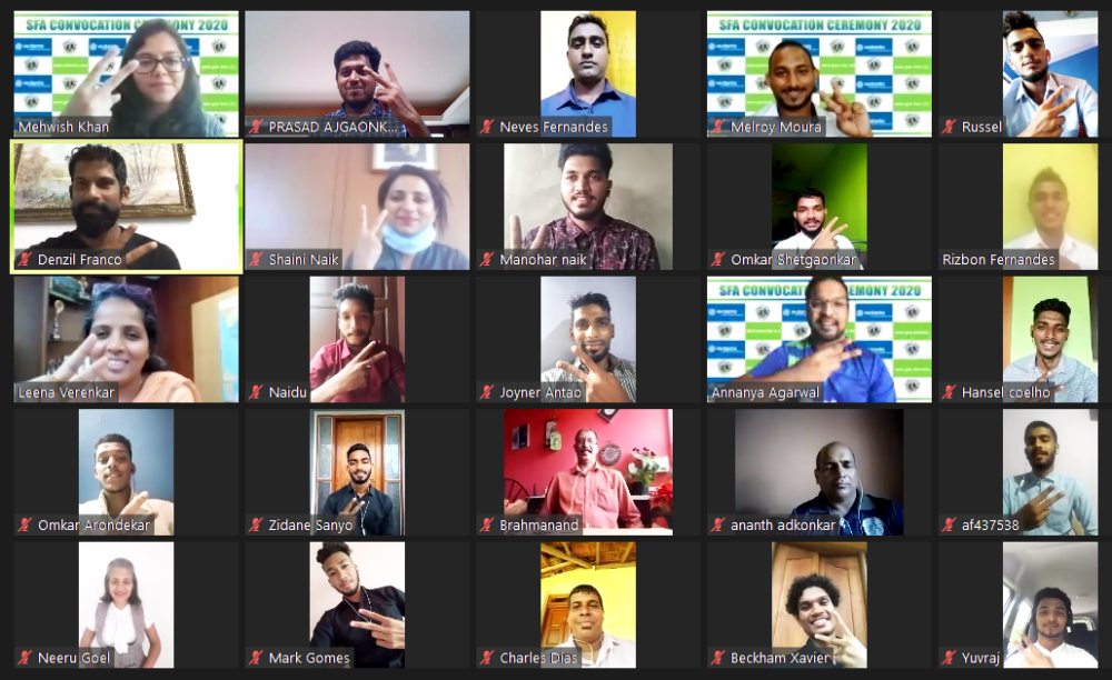 SESA Football Academy (SFA) felicitated young graduates during Convocation Ceremony 2020 through virtual platforms. 27 boys who completed their football training at SFA were felicitated and awarded with E-certificates in the distinguished presence of Mr. Annanya Agarwal (President- Sesa Football Academy), Mr. Sauvick Mazumdar (CEO- Vedanta Sesa Goa Iron Ore Business), Mr. Brahmanand Sankhwalkar (former Captain of Indian football team and Arjuna Awardee), Mr. Denzil Franco (Former Indian team player, ISL player and an SFA alumnus) and Ms. Leena Verenkar (Head- Group CSR , Vedanta Limited).